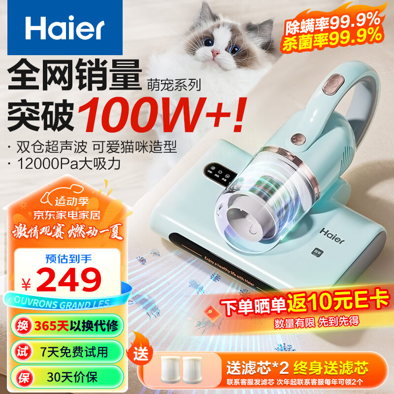 海尔萌宠除螨仪家用床上吸尘器 大吸力除螨 UV-C紫外线杀菌双仓超声波 热风除湿吸尘神器CM1E价格:249.00元!