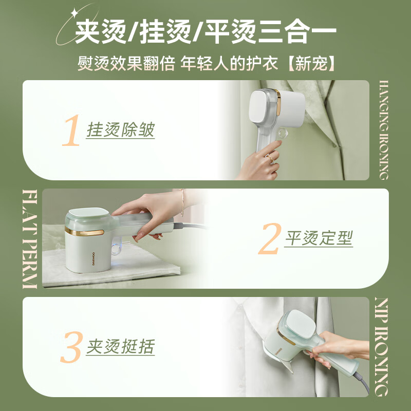 大宇(DAEWOO)手持挂烫机家用蒸汽电熨斗熨烫机差旅便携杀菌除螨 小型熨烫衣服神器 HI-038-BAI价格:169.00元!
