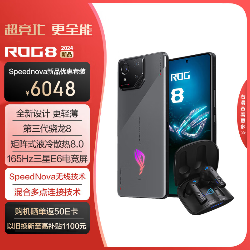 ROG8 AI游戏手机 12+256 风暴灰 骁龙8Gen3矩阵式液冷散热8.0 165Hz高刷【speednova耳机优惠组套版】价格:6048.00元!