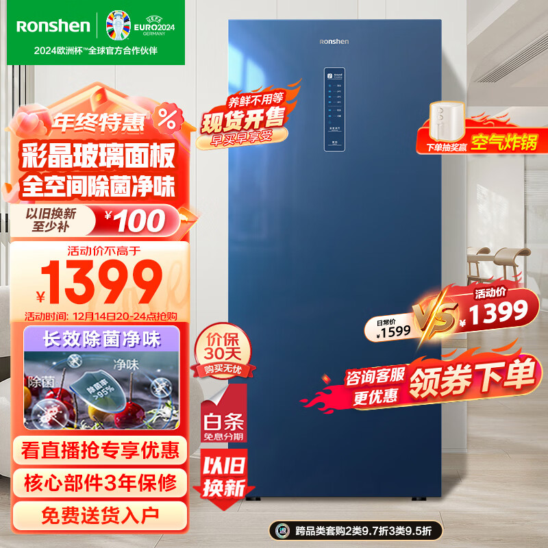 容声(Ronshen) 132升立式冰柜一级能效冰柜家用办公室冷冻柜 风冷无霜除菌净味冷柜母婴小冰箱BD-132WRSY价格:1399.00元!