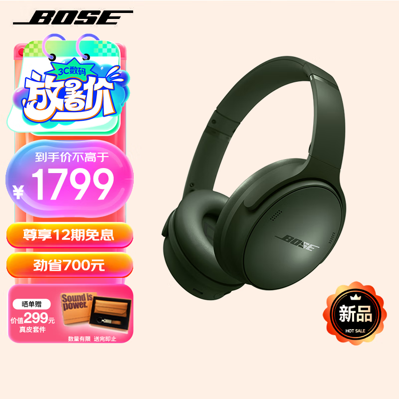 Bose QuietComfort 45 无线消噪蓝牙耳机头戴式主动降噪耳机 QC45 动态音质均衡 QC45升级款-松柏绿价格:2199.00元!
