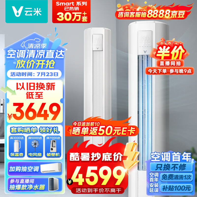 云米(VIOMI)新一级能效 Smart 3智能变频冷暖 以旧换新3匹空调客厅圆柱立式空调柜机KFRd-72LW/Y3PF6-A1价格:4599.00元!