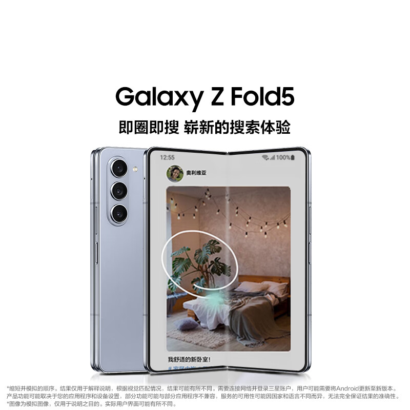 三星(SAMSUNG)Galaxy Z Fold5 AI手机 超闭合折叠手机 同声翻译 智能修图摄像 12GB+512GB 冰萃蓝 5G折叠屏手机价格:10999.00元!