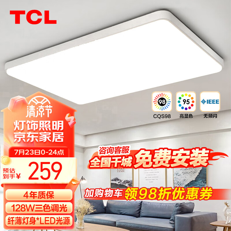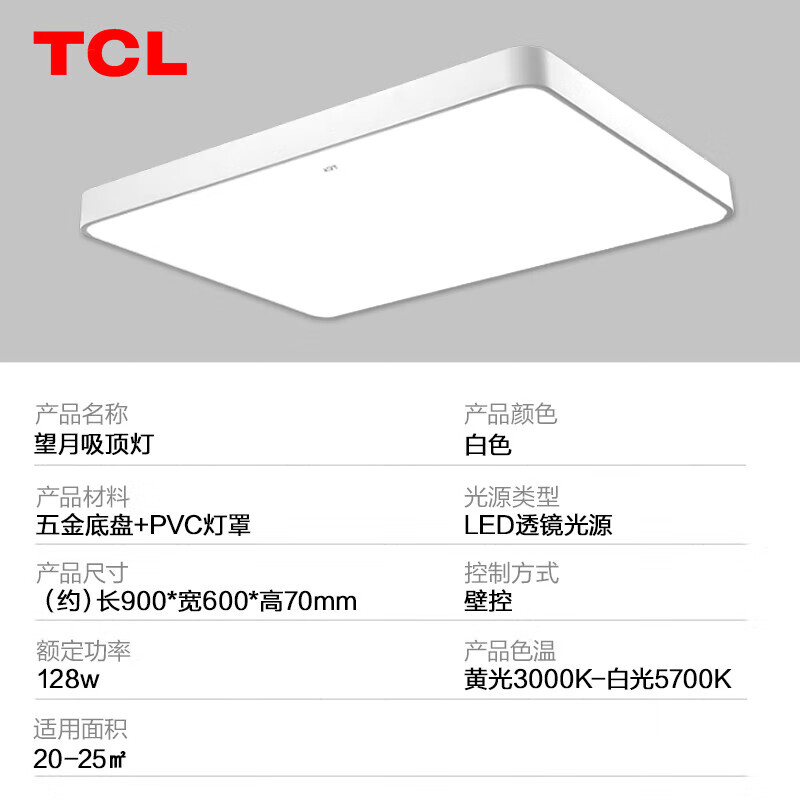 TCL灯饰客厅吸顶灯大厅led大灯主灯 现代简约128W三色调光中山灯具价格:259.00元!