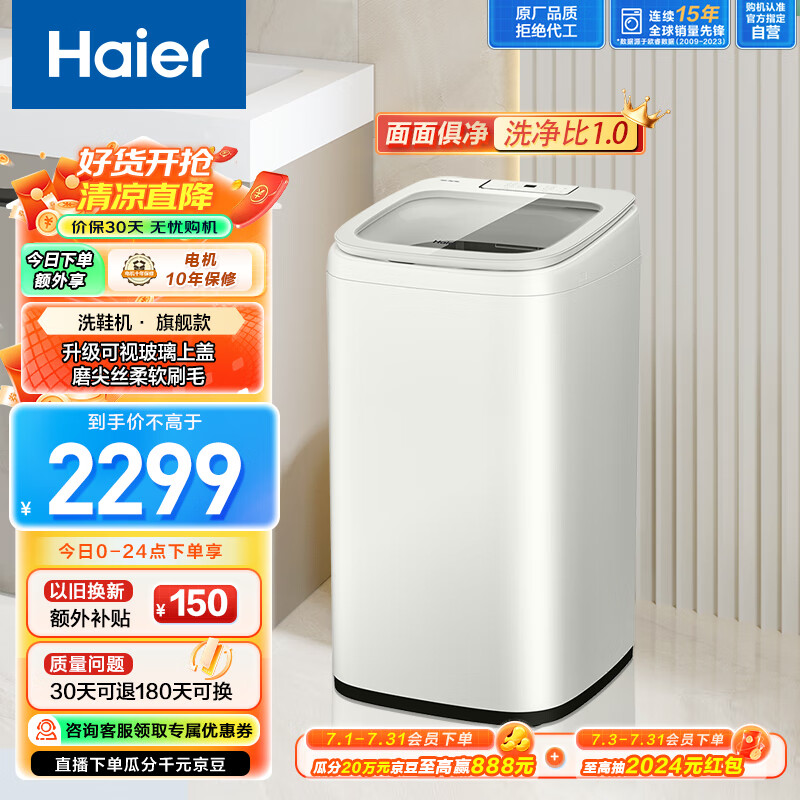 海尔(Haier)洗鞋机 洗衣机小型 刷鞋机全自动 5KG家用洗鞋神器 洗脱一体 变频 电离除菌 以旧换新HQ1-TB278G价格:2299.00元!