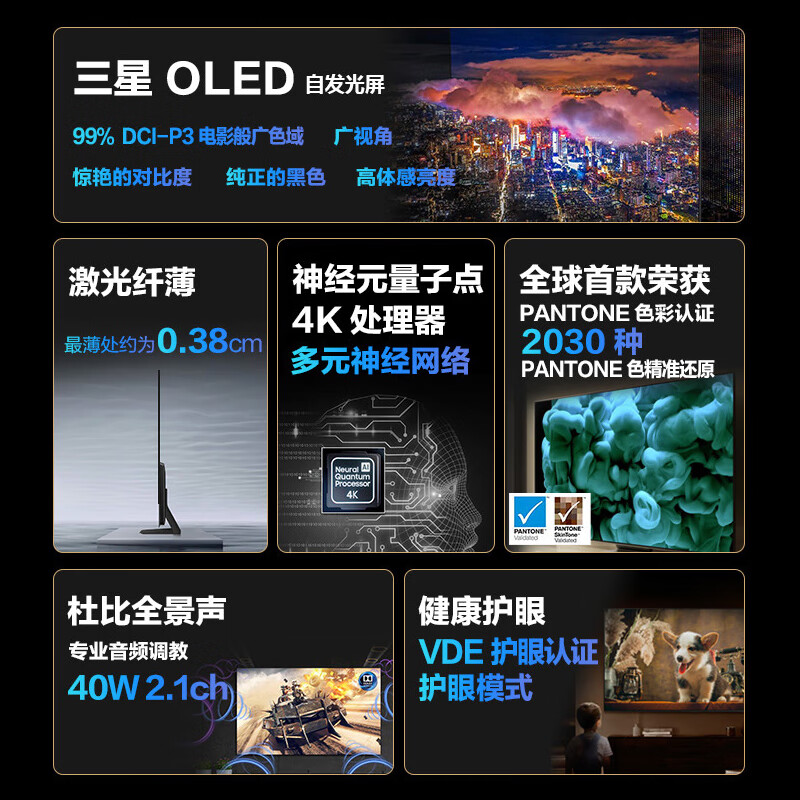 三星(SAMSUNG)55S90Z 55英寸 OLED电视 超薄4K 144Hz 超薄屏 无开机广告 HDMI2.1 QA55S90ZAJXXZ价格:9599.00元!