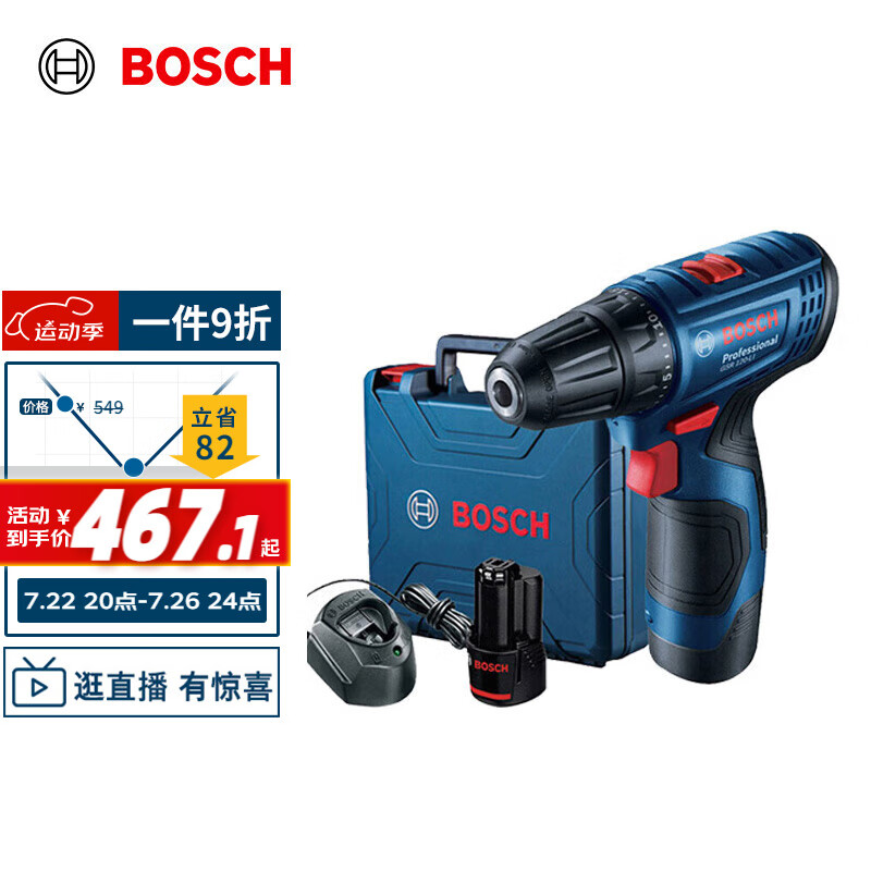 博世(BOSCH)GSR 120-LI 12V充电式电动工具电动螺丝刀锂电手电钻 2.0Ah电池*2价格:519.00元!