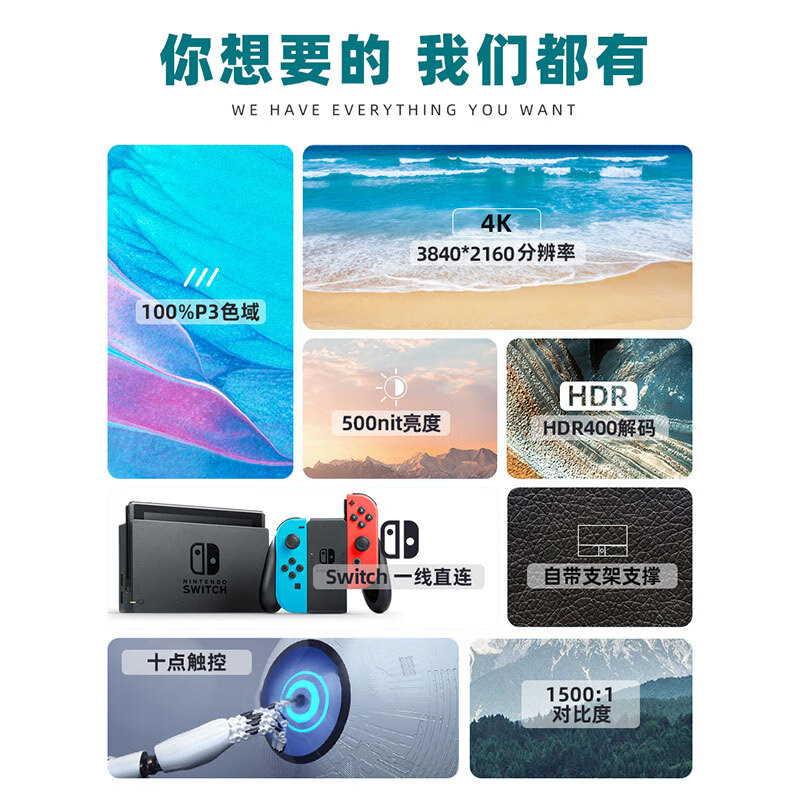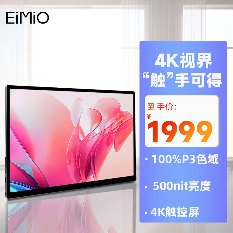 Eimio 17.3英寸4K触控便携式显示器【100%P3色域】 IPS显示屏电脑笔记本副屏switch手机PS5扩展屏分屏M17UT价格:2199.00元!