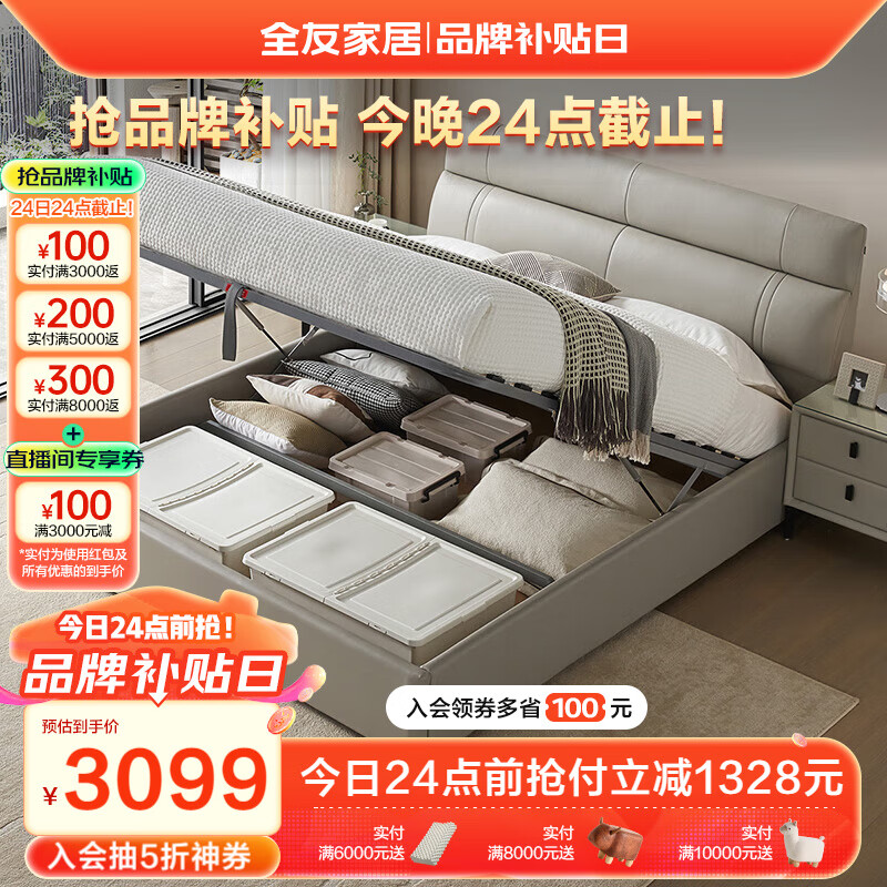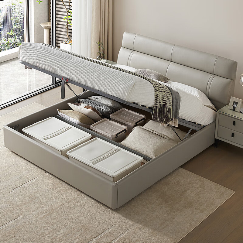 全友家居 真皮艺床头层牛皮现代简约主卧室双人大床高箱储物床105251价格:4427.14元!