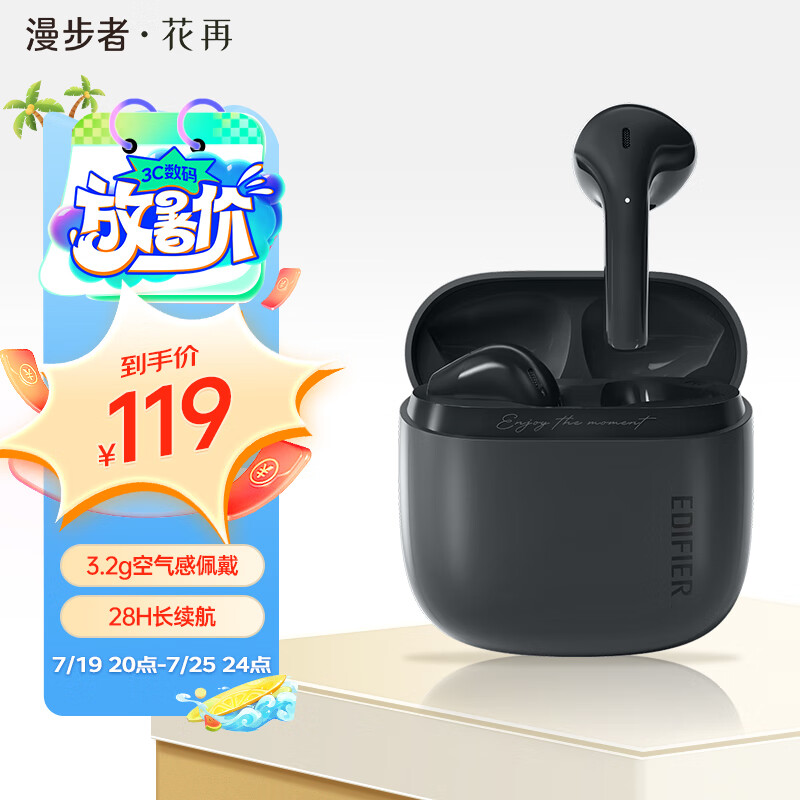 漫步者花再Zero Air 真无线蓝牙耳机 半入耳式耳机 无线耳机 蓝牙5.3耳机 适用苹果安卓华为小米 慕灰价格:119.00元!