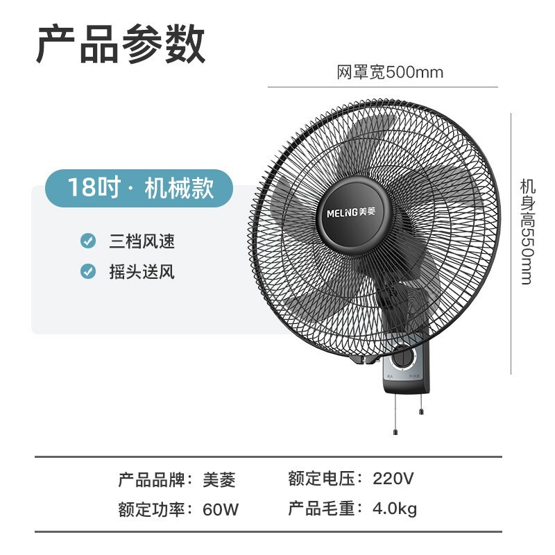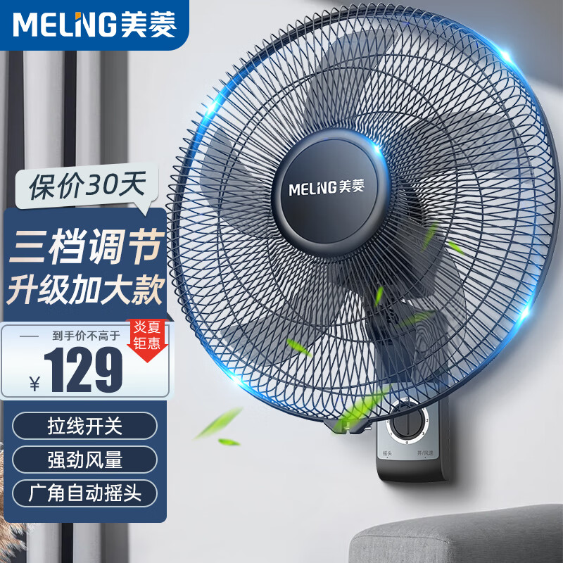 美菱MELNG 电风扇/壁扇/家用餐厅宿舍摇头壁挂式风扇商用工业食堂五叶大风力挂扇FB45-2价格:129.00元!