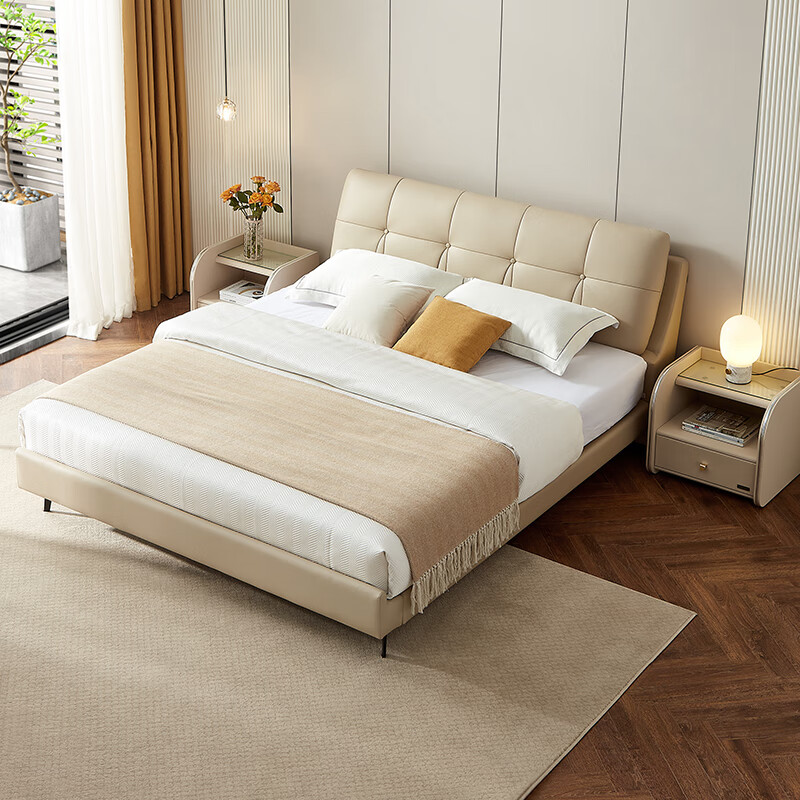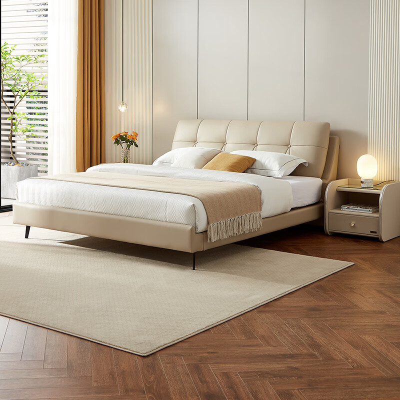 全友家居 真皮艺双人床现代简约主卧室头层牛皮软包床1.5x2米105135价格:4284.29元!