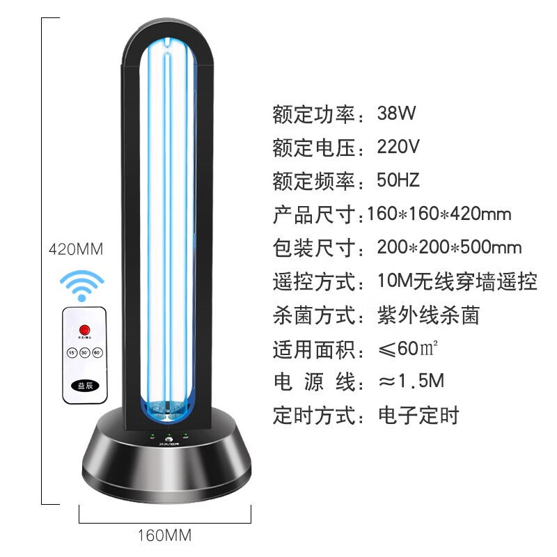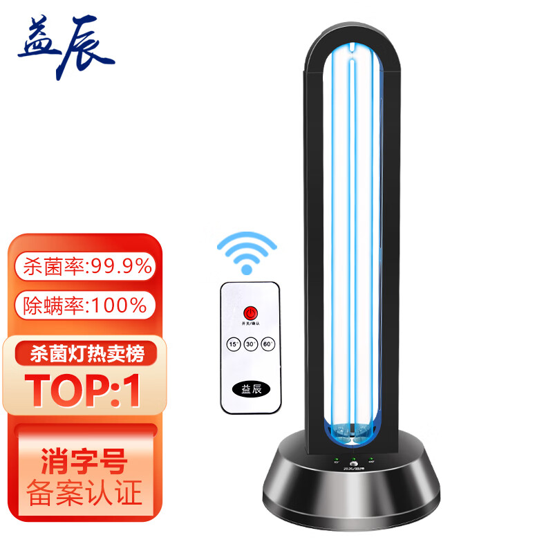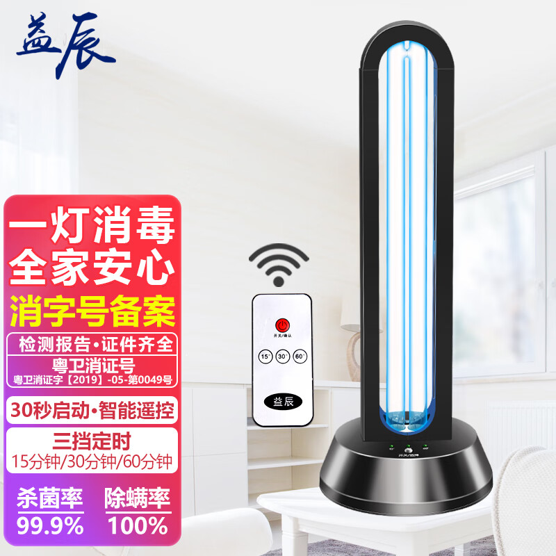 益辰38W紫外线消毒灯杀菌灯家用灭菌幼儿园移动除螨除异味无臭氧遥控价格:199.00元!