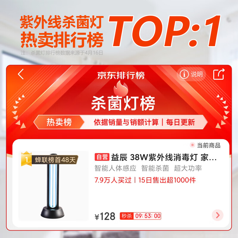益辰38W谍影紫外线杀菌灯价格参考: