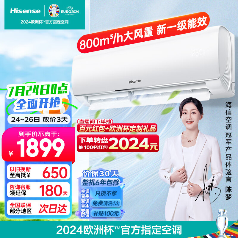 海信(Hisense)大1匹 速冷热 新一级能效变频超大风量防直吹静音智能 壁挂式卧室空调挂机 KFR-26GW/E290-X1价格:1899.00元!