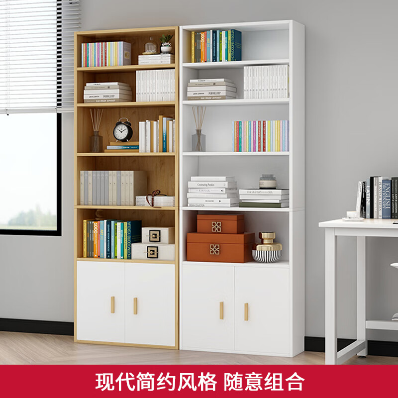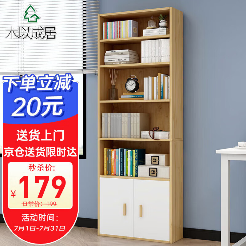 木以成居书架落地1.86m简约书柜客厅卧室书房阳台带门简易置物架原木色价格:199.00元!