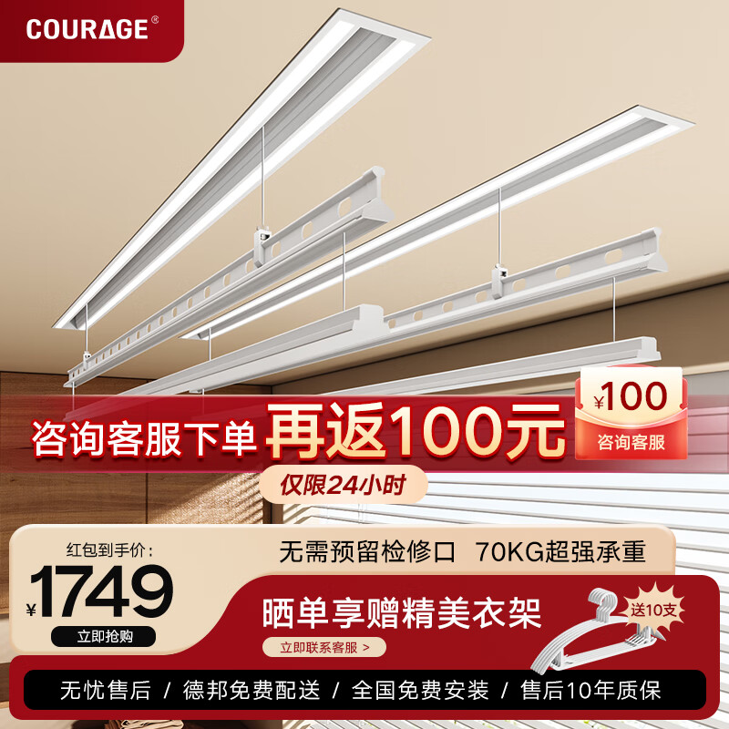卡瑞琪(COURAGE)电动晾衣架隐形阳台家用隐藏式晾衣架薄晾衣杆双杆 米家2.4+被杆价格:2449.00元!