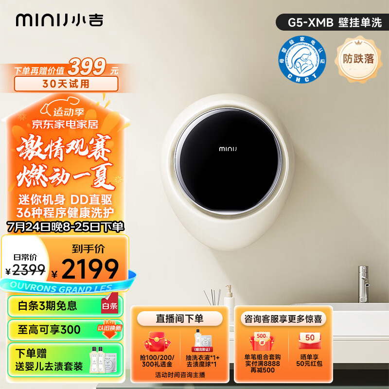 小吉(MINIJ)全自动母婴专洗 防跌落 1kg智能迷你机身壁挂洗衣机 小水滴 G5-XMB价格:2399.00元!