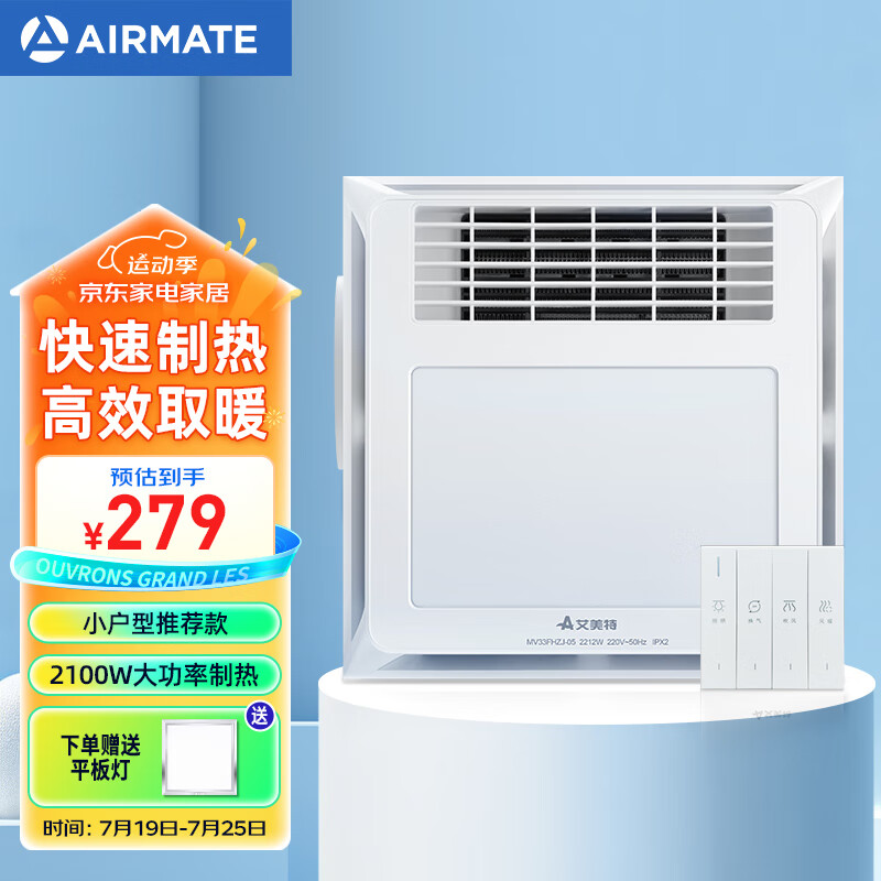 艾美特(Airmate )MV33FHZJ-05浴霸 多功能浴室卫生间集成吊顶超薄风暖浴霸价格:279.00元!