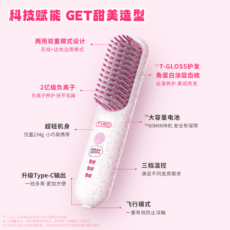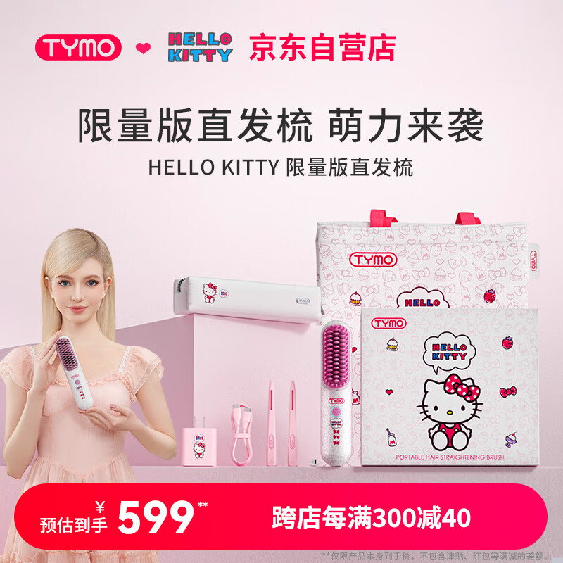 TYMO直发梳Hello Kitty礼盒装 无线直发梳负离子护发便携两用持久定型造型梳 七夕送女生节生日礼物价格:679.00元!