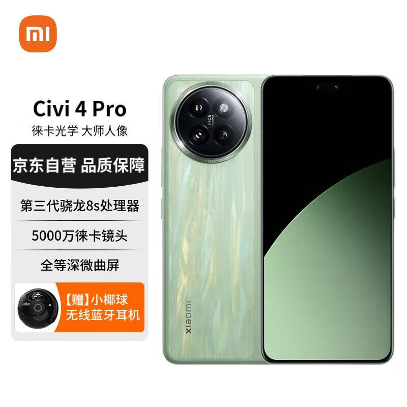 小米Civi 4 Pro 16GB+512GB 春野绿 5000万徕卡镜头 第三代骁龙8s 全等深微曲屏5g 红米小米手机价格:3199.00元!