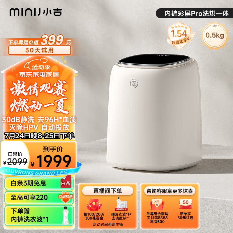 小吉0.5kg内衣洗衣机小型迷你高温煮洗去血渍洗烘一体变频内裤洗衣机U10-MD PRO价格:2099.00元!