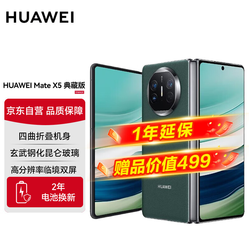 华为(HUAWEI)Mate X5 典藏版 折叠屏手机 16GB+512GB 青山黛价格:19999.00元!