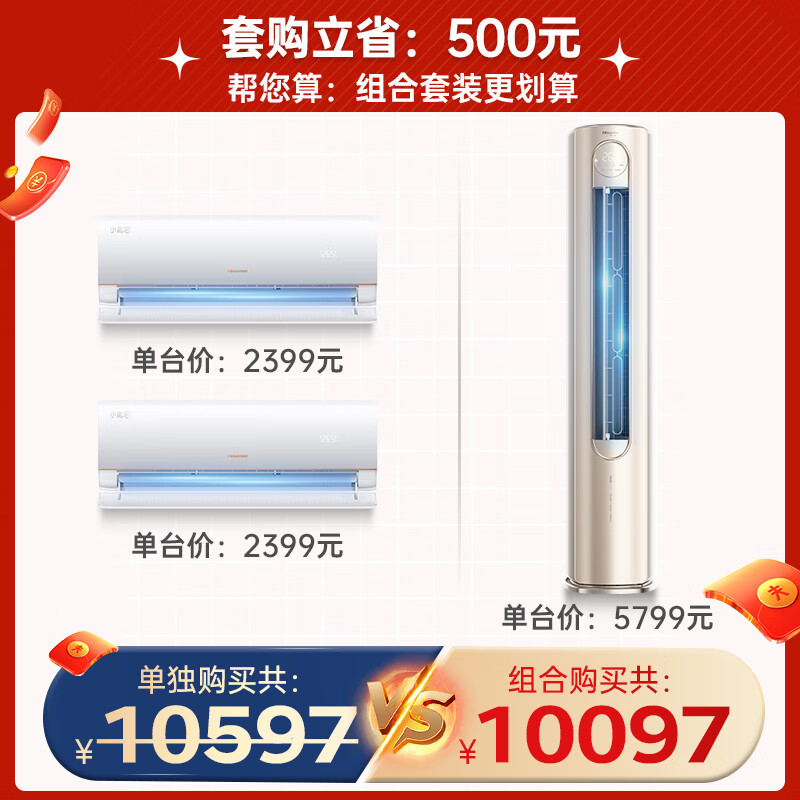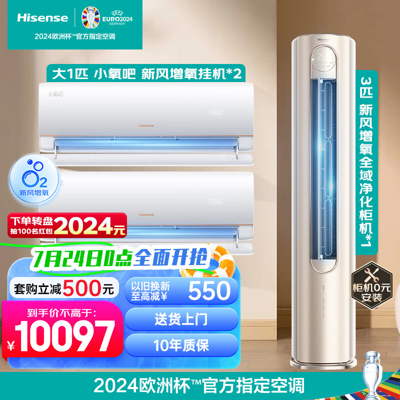海信(Hisense)新风增氧空调套装 二室一厅 新一级能效全域净化客厅柜机卧室家用挂机(大1匹*2+3匹)价格:10097.00元!