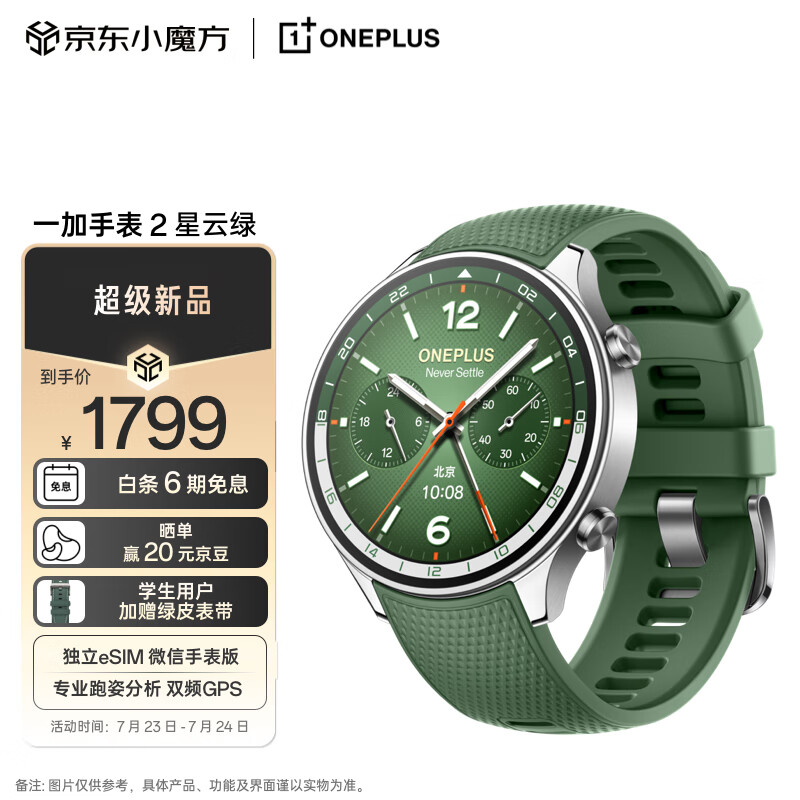 一加手表 2 星云绿 智能健康手表 男女运动手表 eSIM电话手表 OPPO手表 专业跑姿分析 微信手表版价格:1799.00元!