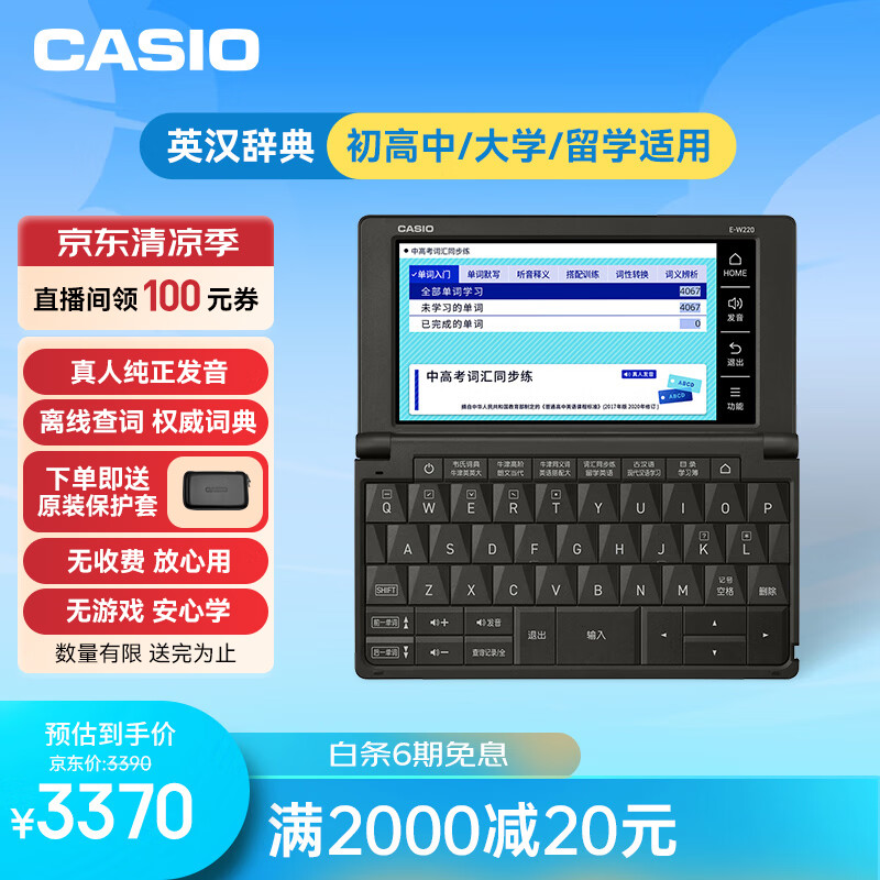 卡西欧(CASIO)卡西欧电子词典 E-W220BK 英汉电子辞典、初高中、大学、留学适用 水墨黑价格:3390.00元!