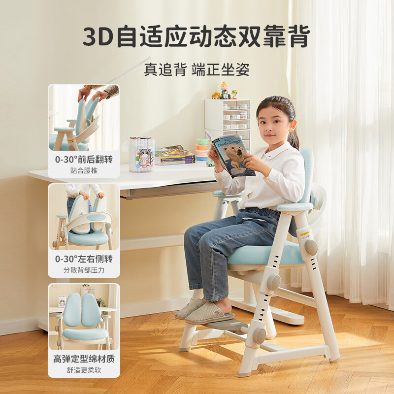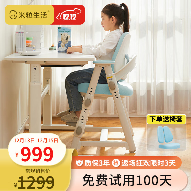 米粒生活儿童学习椅子可升降小学生写字椅家用书房座椅端正坐姿132F蓝价格:1299.00元!
