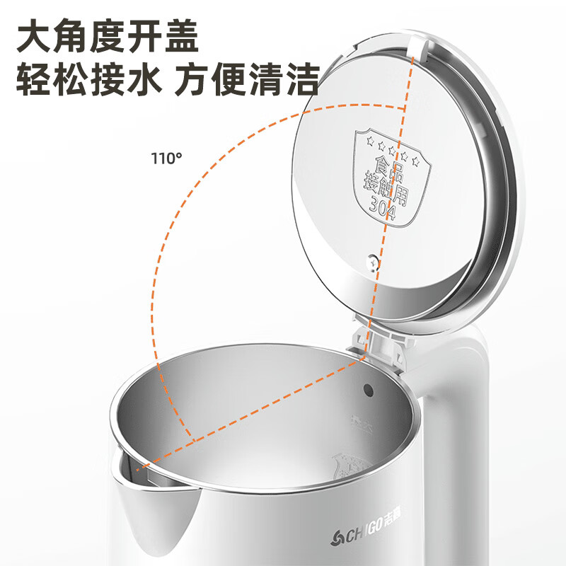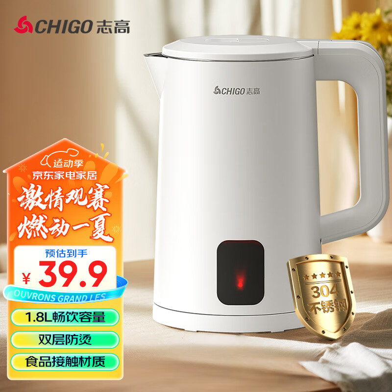 志高(CHIGO)电热水壶烧水壶热水壶电水壶自动断电双层防烫家用1.8L大容量304不锈钢煮水壶开水壶WM806价格:39.90元!