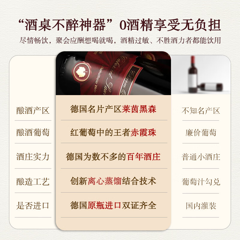 达颜无醇葡萄酒原瓶进口 红酒0度零度真脱醇无酒精应酬挡酒750ml*1价格:129.00元!