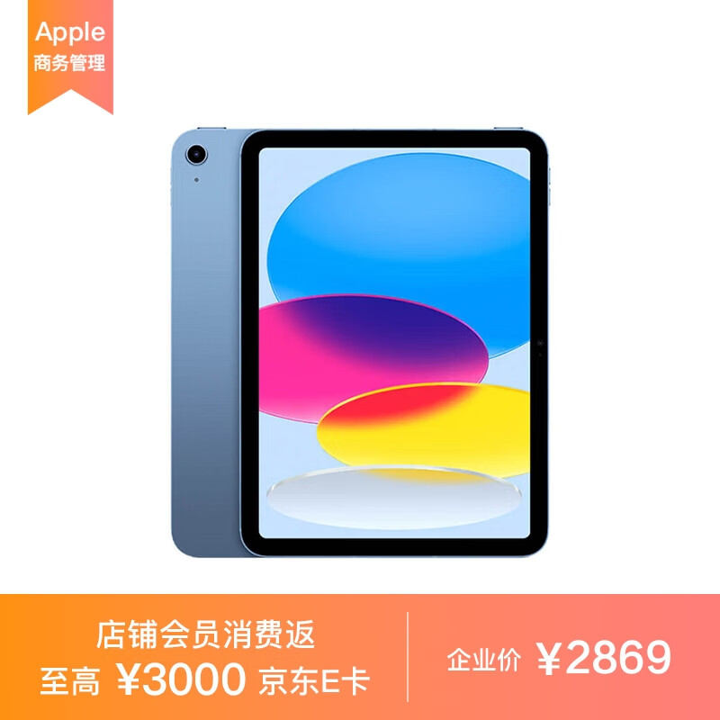Apple iPad 10.9英寸平板电脑 2022年款(64GB WLAN版/A14芯片/1200万像素/iPadOS MPQ13CH/A)蓝色*企业专享价格:2999.00元!