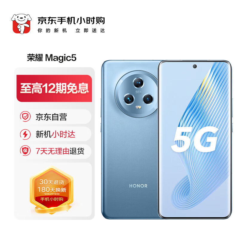 荣耀Magic5 12GB+256GB 勃朗蓝【小时购】价格:4449.00元!