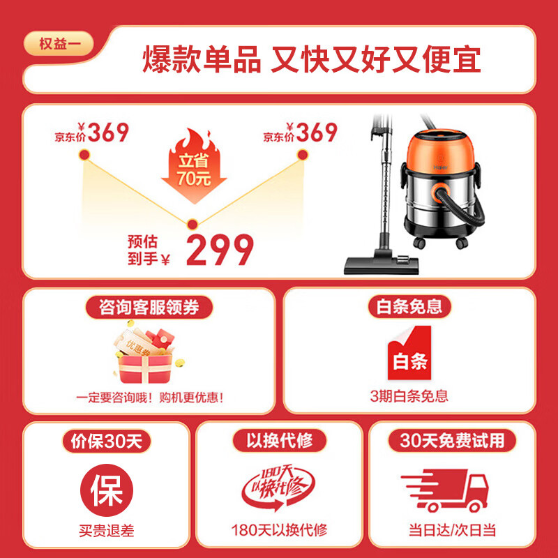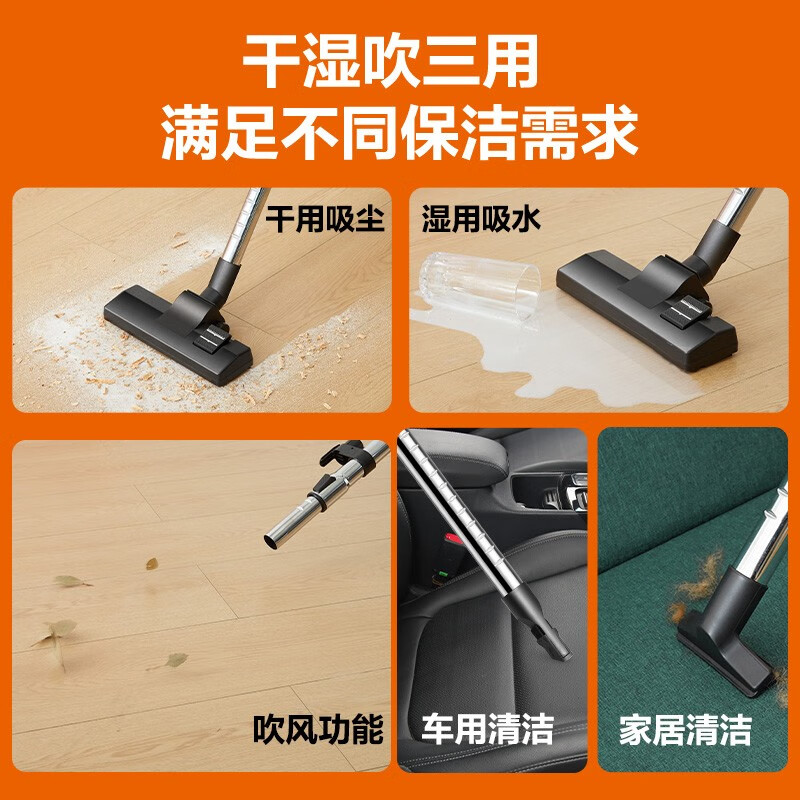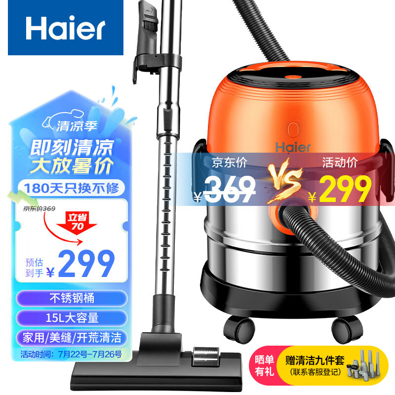 海尔(Haier)桶式吸尘器家用 不锈钢15L大容量 干湿吹三用大功率大吸力商用吸尘机HZ-T715价格:299.00元!