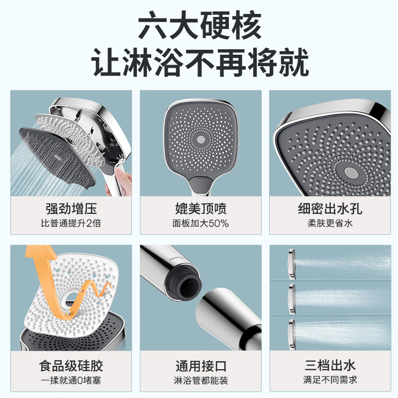 箭牌(ARROW)多功能大面板手持莲蓬头增压花洒单头AE58126CP价格:139.00元!