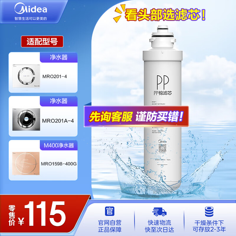 美的(Midea)净水器滤芯-适用于MRO201-4、MRO201A-4、X400、X600、大智等 F1系列- PP棉滤芯价格:115.00元!