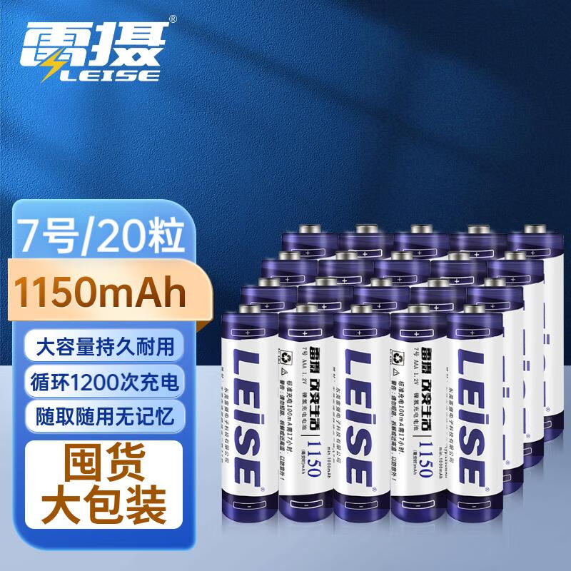 雷摄(LEISE)高容量镍氢充电电池 7号/七号/AAA/1150毫安(20节) 适用:玩具/鼠标/遥控器(不含充电器)价格:119.00元!