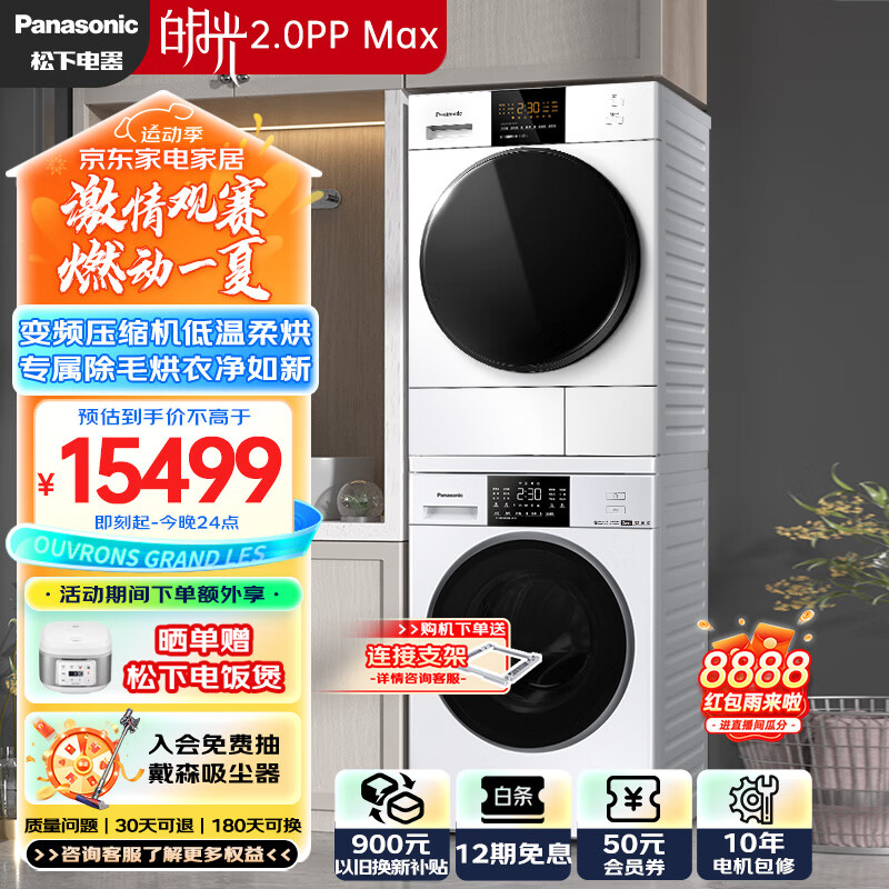 松下(Panasonic)白月光2.0PP Max 升级护理版 12+10洗烘套装 原装变频压缩机 冷热除菌 宠物除毛烘 3NB1E+82QR1价格:15499.00元!