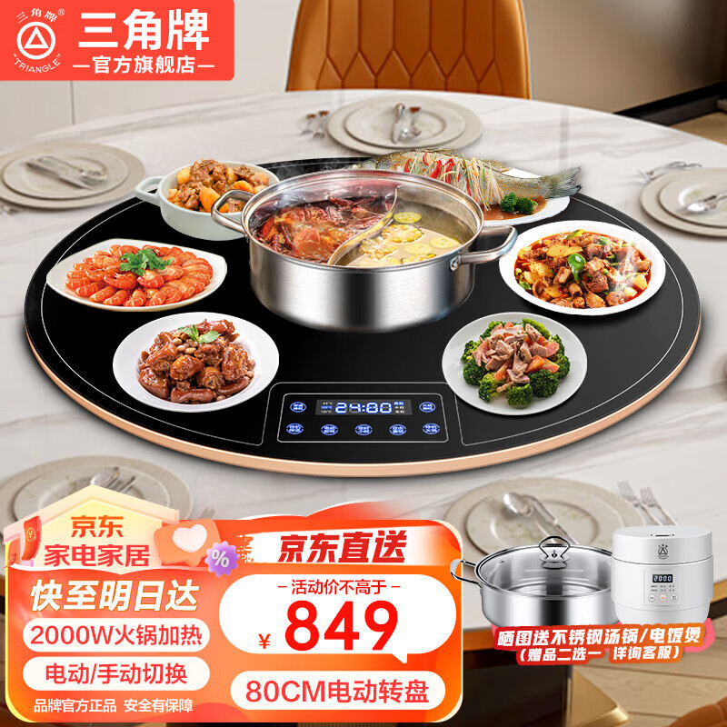 三角牌(Triangle) 暖菜板热菜板加热板饭菜保温板电磁炉多功能带火锅暖菜转盘自动旋转饭菜餐桌 【圆形80CM】电动转盘+触控+电磁炉价格:849.00元!