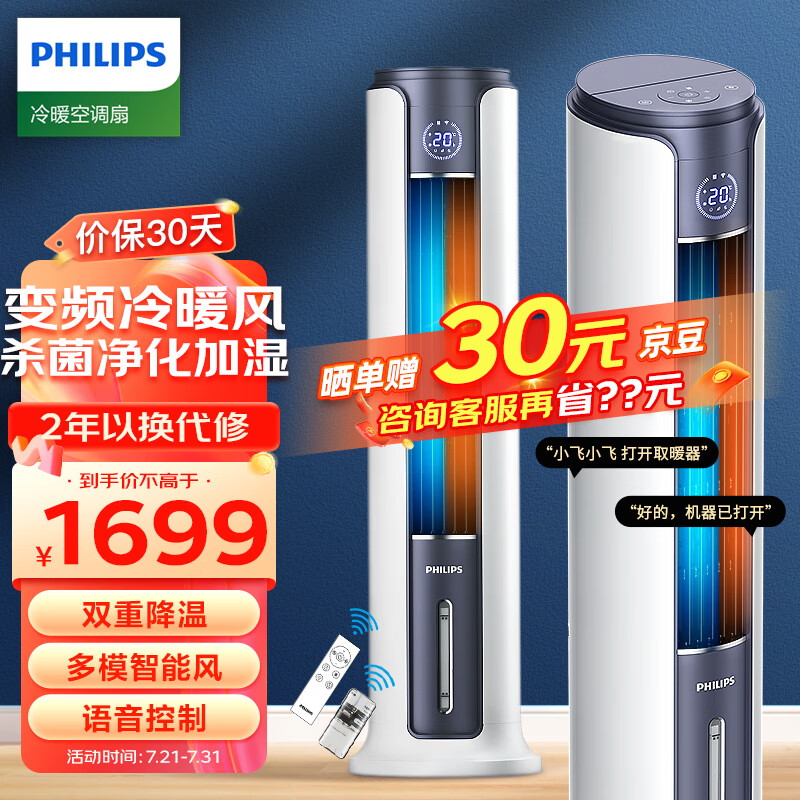 飞利浦(PHILIPS)空调扇制冷风机冷风扇家用冷暖两用水冷塔扇客厅卧室加湿负离子净化杀菌语音智控水空调 ACR5166TN价格:2249.00元!