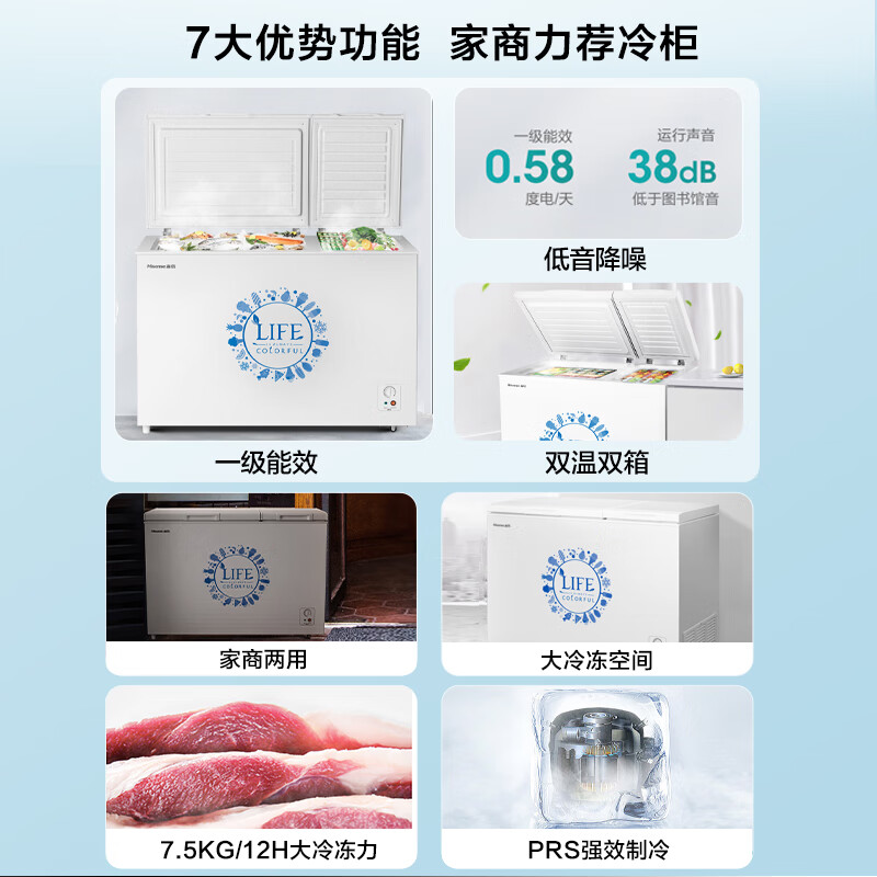 海信(Hisense) 冰柜家用双温大冷柜280升 商用冷藏冷冻柜大容量 一级能效保鲜柜BCD-280ND价格:1349.00元!