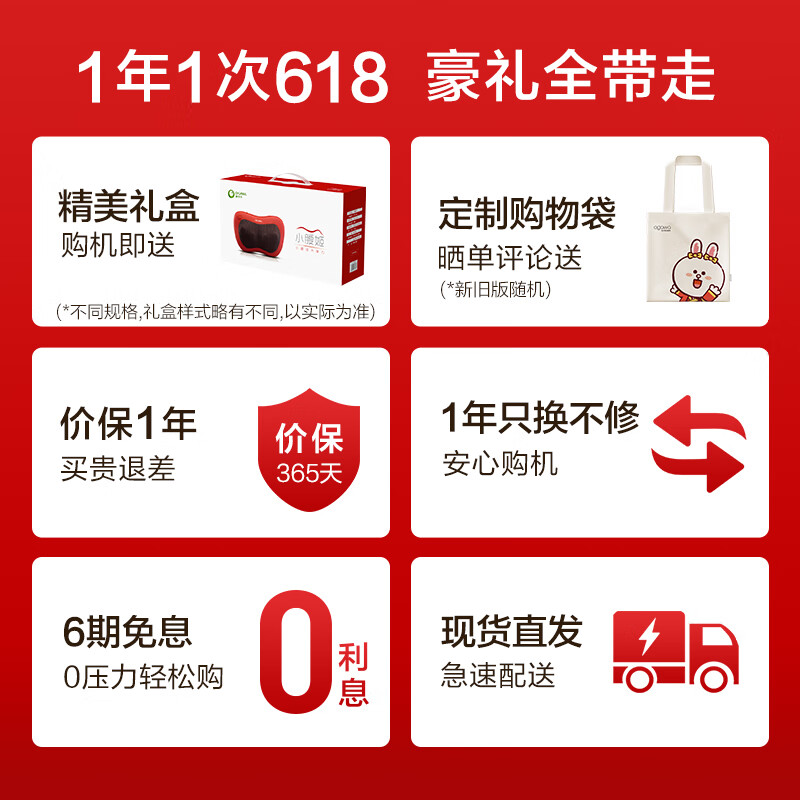 奥佳华(OGAWA)按摩枕颈椎肩颈部腰部按摩仪可全身多功能热敷按摩靠枕家用按摩器小腰姬OG2101生日节日礼物礼盒款 经典版 红色价格:599.00元!