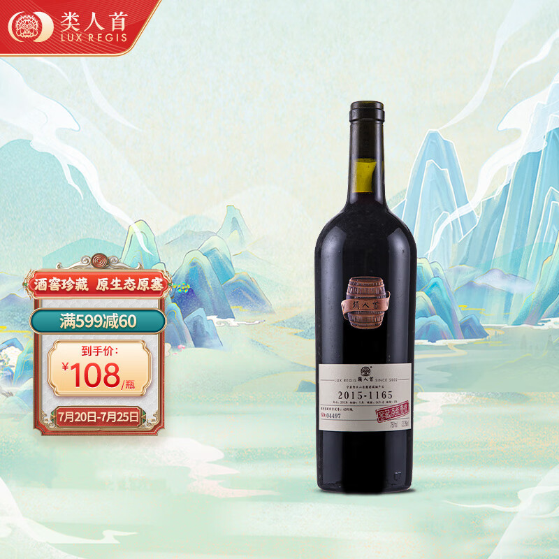 类人首红酒 宁夏贺兰山2015年原生态窖藏美乐橡木桶干红葡萄酒老酒750ml价格:108.00元!