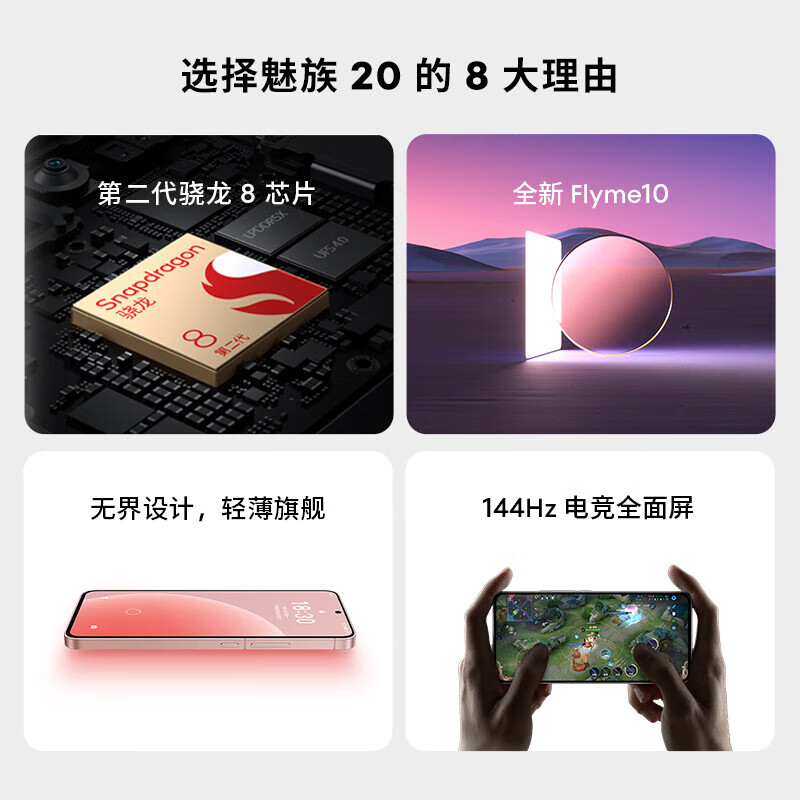 魅族 20 12GB+512GB 先锋灰 第二代骁龙8旗舰芯片 144Hz电竞直屏 支持67W快充 超薄机身设计 5G手机价格:2199.00元!