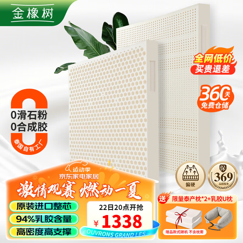 金橡树泰国原产进口天然乳胶床垫150*200*7.5cm 94%乳胶含量 泰优95D价格:2199.00元!