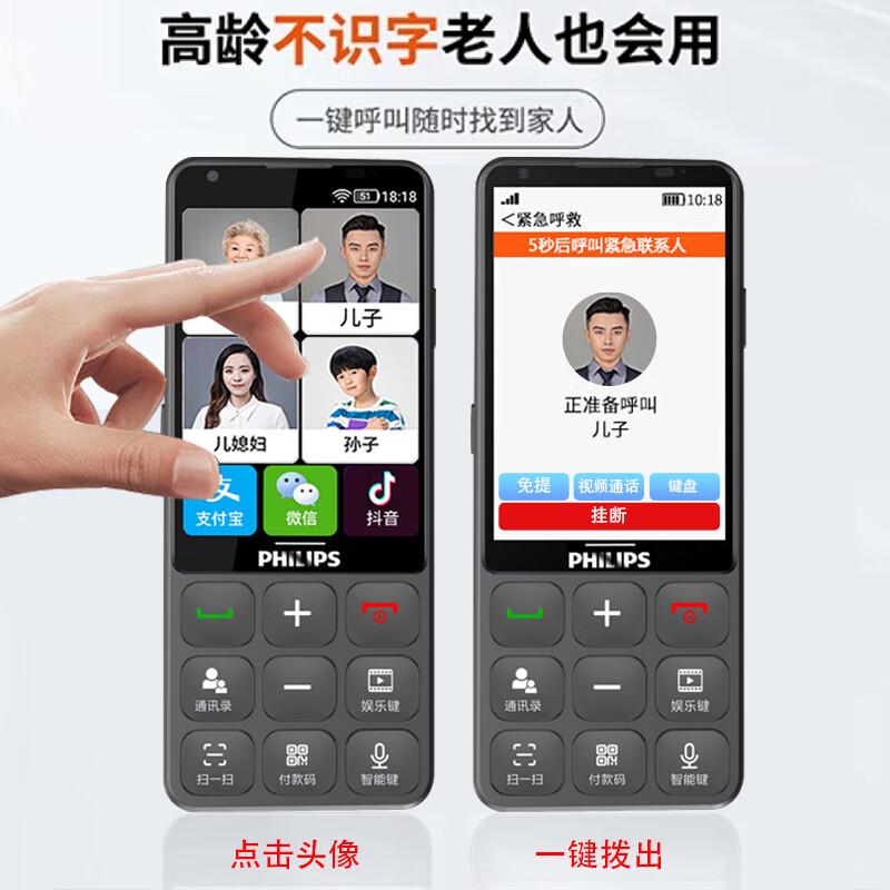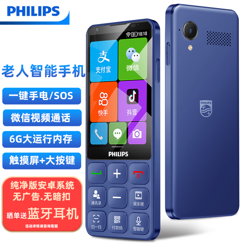 飞利浦(PHILIPS)E6820 宝石蓝 6+64G 智能老年人手机超长待机微信触屏按键 4G通 安卓防沉迷学生备用机价格:679.00元!