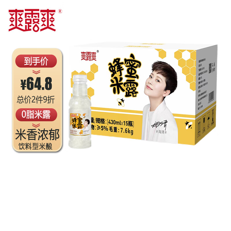 爽露爽蜂蜜米露 饮料型米酿 米酒 430ml*15瓶 醪糟 速食即食零食 整箱价格:72.00元!
