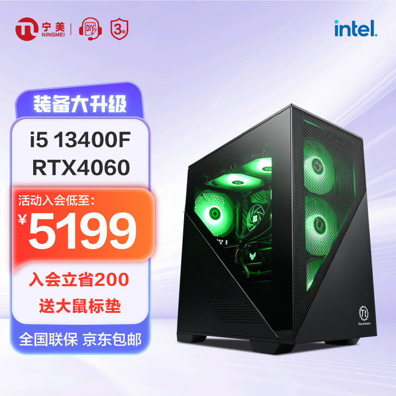 宁美国度魂 i5-13400F/RTX4060/16G/500G SSD/B760M主板/吃鸡永劫无间游戏主机组装电脑台式机/UPC价格:5299.00元!